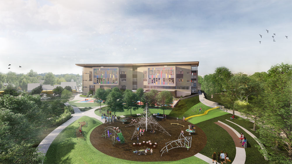 Scheduled to open in the summer of 2020, Lubber Run Community Center will become VMDO’s fourth net-zero energy facility in Arlington, Virginia. It recognizes the value of the 4.5 acre open space in a rapidly urbanizing area for human and environmental health as well as community life. The project replaces a former 1950s-era community center with a state-of-the-art, highly energy efficient building that conceals much of the program under a vast green roof that helps treat and manage stormwater while providing additional space for community amenities. Through the integration of building and landscape, the project offers a holistic response to an urban challenge – ultimately creating greater and greener public space for the community.