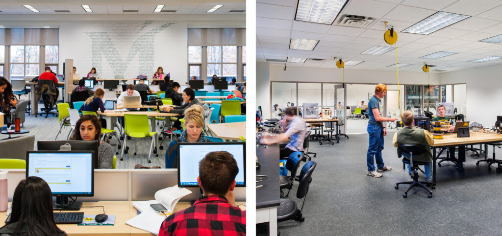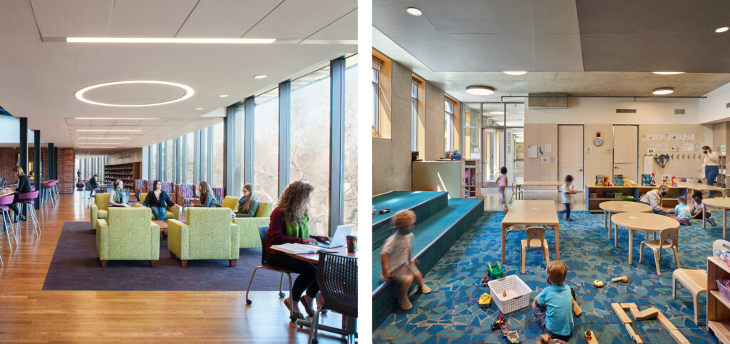 Libraries are prioritizing flexibility, diversity, and user optimization. The pandemic surfaced a deep need for outdoor amenities that promote gathering and socializing, and healthy indoor learning spaces that foster a sense of community. A 21st century library can be a “neighborhood living room” where people come to participate in a range of community-based activities, from meetings to lifelong learning opportunities to performances. We are seeing a growing demand for large public gathering areas like meeting rooms, performance spaces, outdoor learning spaces, and hands-on learning labs and maker spaces. There is also an increased need for learning, study, and lounge areas that can accommodate a diverse range of users designed expressly for the unique needs of children, tweens, teens, adults and retirees.