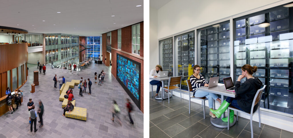 Create flexible, hybrid environments that invite people to move easily from browsing shelves and exhibitions to grabbing a cup of coffee and reading quietly, to working on a group project.