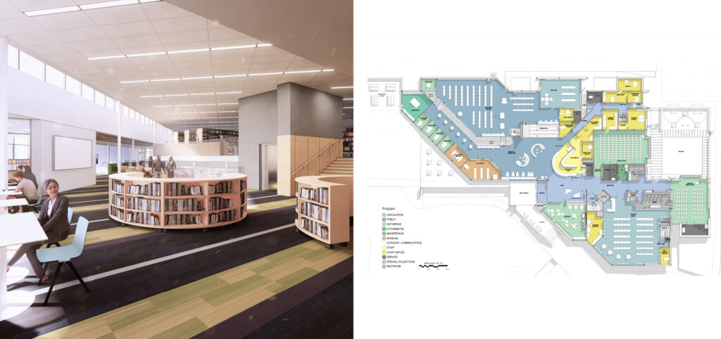 A public library design project can be transformational. A library can be a community event center, a tech hub, a living room, a bustling intersection, an information station, a center for well-being – a holistic vision of “community,” all under one roof. Each project is an opportunity to expand the definition of a library and create a space that reflects the unique needs and values of the place it serves.