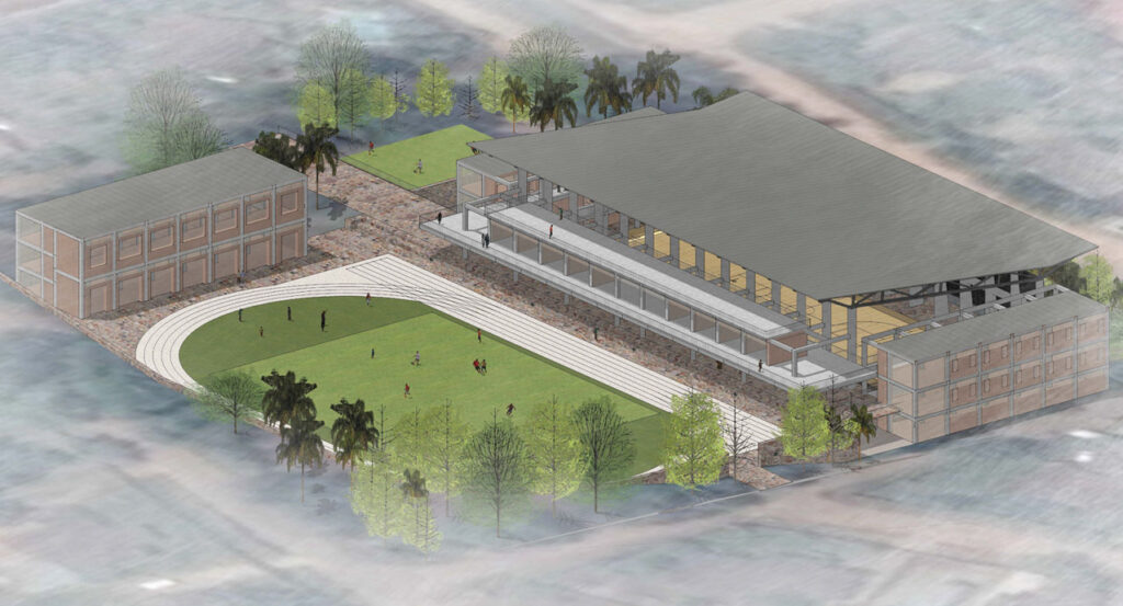 With the support of VMDO’s design work, Kickoff to Hope and local Burundi engineers and builders will construct a sports complex comprised of a 1,000-seat sports hall for basketball and volleyball and a 6 v. 6 soccer pitch centered inside a 200-meter track. The complex will serve as a community center for the people of Burundi to enjoy a range of sports as well as a place for educational programming focused on sports medicine, nutrition, training, strength and conditioning, and fitness. The site will maintain a community garden that is currently in use and provide play areas for children with a perimeter walking path.