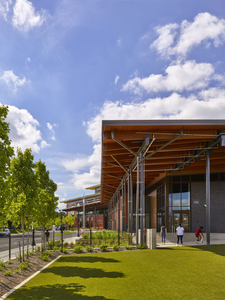 Fleet Elementary is the second of three net-zero energy schools for Arlington Public Schools. Sited adjacent to a middle school, park, and rec center, the school transforms a parking lot into a community landscape that improves accessibility, connectivity, and sustainability for the entire 20-acre site.