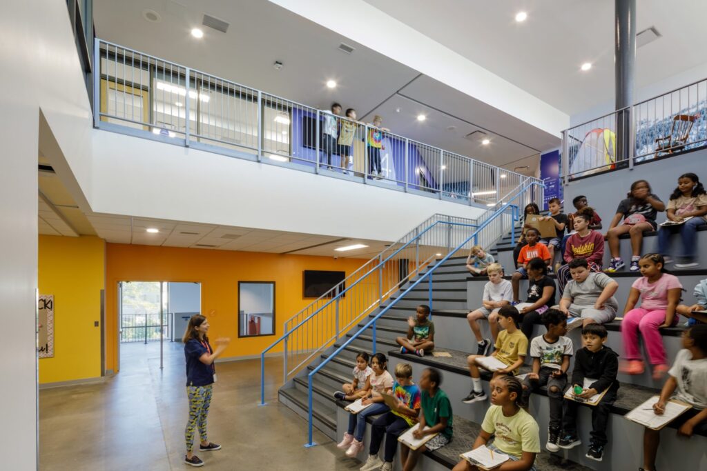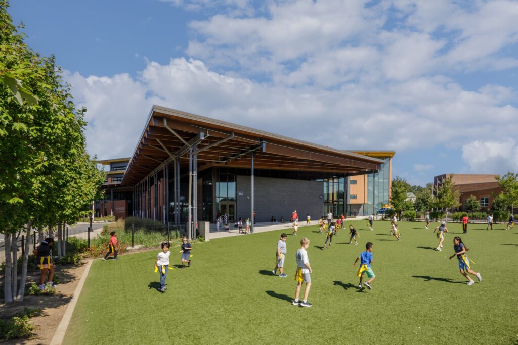 Sited adjacent to a middle school, park, and recreation center, Fleet Elementary transforms a former parking lot into an educational landscape that improves accessibility, connectivity, and environmental conditions for the benefit of the entire 20-acre site. The design team built community trust by ensuring a cohesive park was retained, resulting in no significant loss of green space or recreational programming.