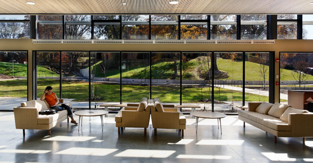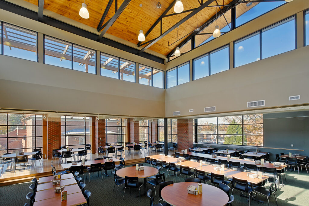 The 41,000 SF Student Center at Averett University provides students with a central gathering place to exchange ideas and develop the personal, professional, and academic relationships so integral to collegiate life. Outside of these benefits, the student center aims to attract more students to this former “commuter” campus by providing them with a variety of spaces and activities that build interaction and community.