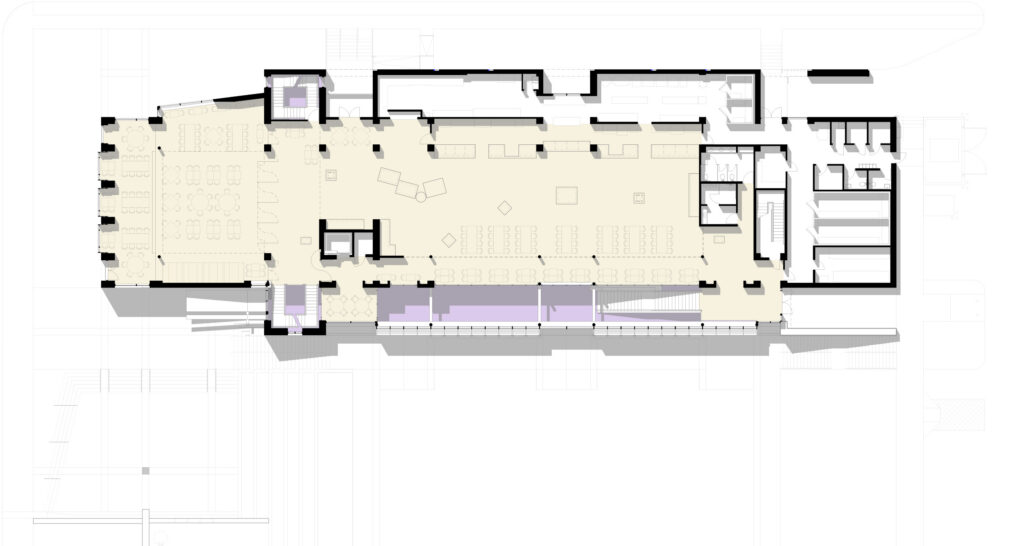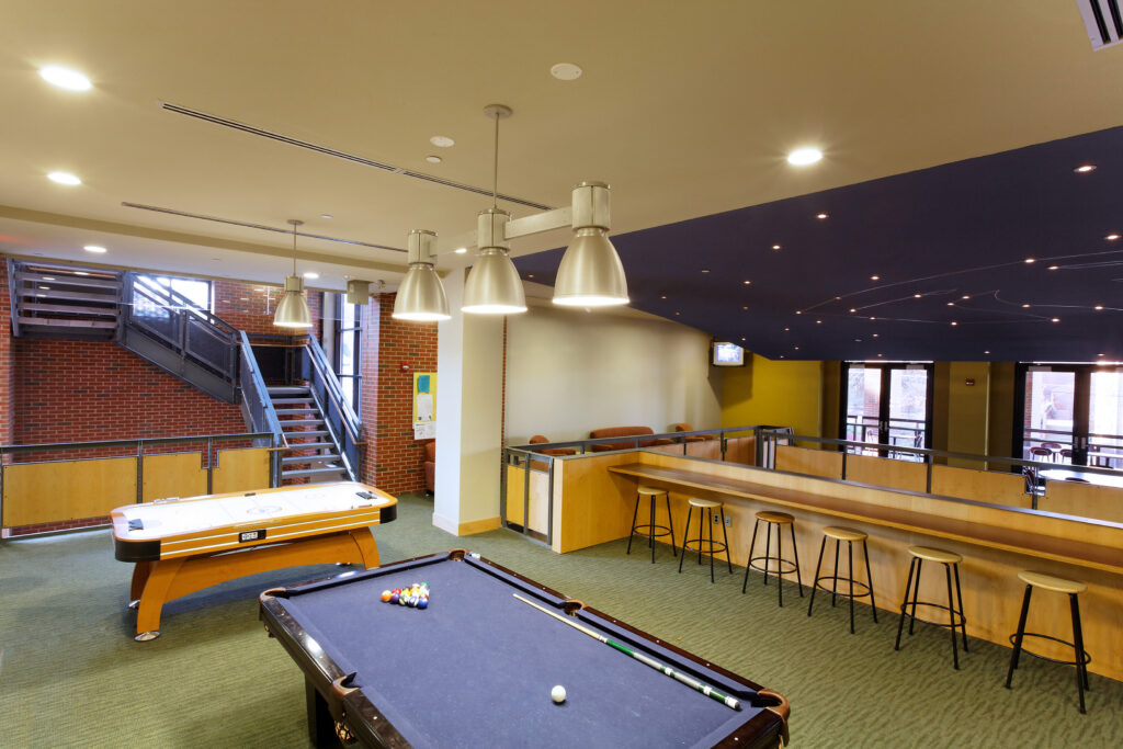 The student center aims to attract more students to this former “commuter” campus by providing them with a variety of spaces and activities that build interaction and community.