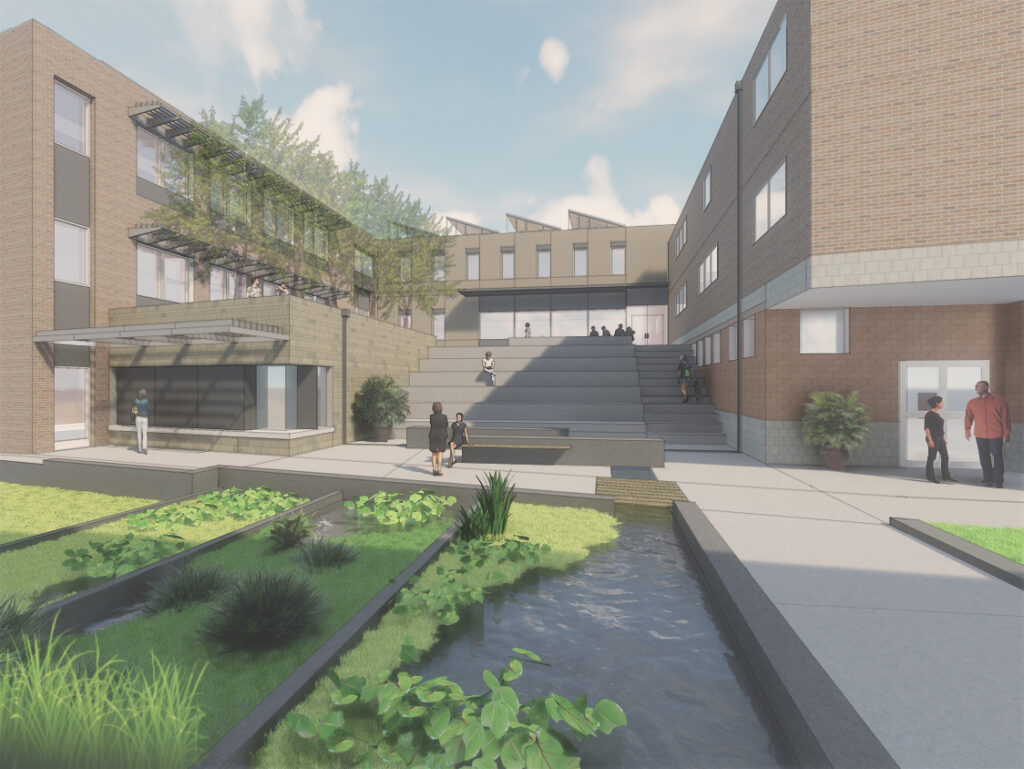 Trapolin-Peer and VMDO compared the current school campus to a prototype baseline facility program to establish the facility’s needs. In addition to addressing the parameters outlined in the school’s Strategic Plan, the program allows the school to adapt to changes in technology and educational pedagogy, supporting learning for decades to come. Analysis considered the conditions of the existing wayfinding and civil, architectural, structural, mechanical, electrical, and fire protection systems to establish a ten-year program for repairs, renovations, and possible additions to upgrade and extend the service life of the existing facility.