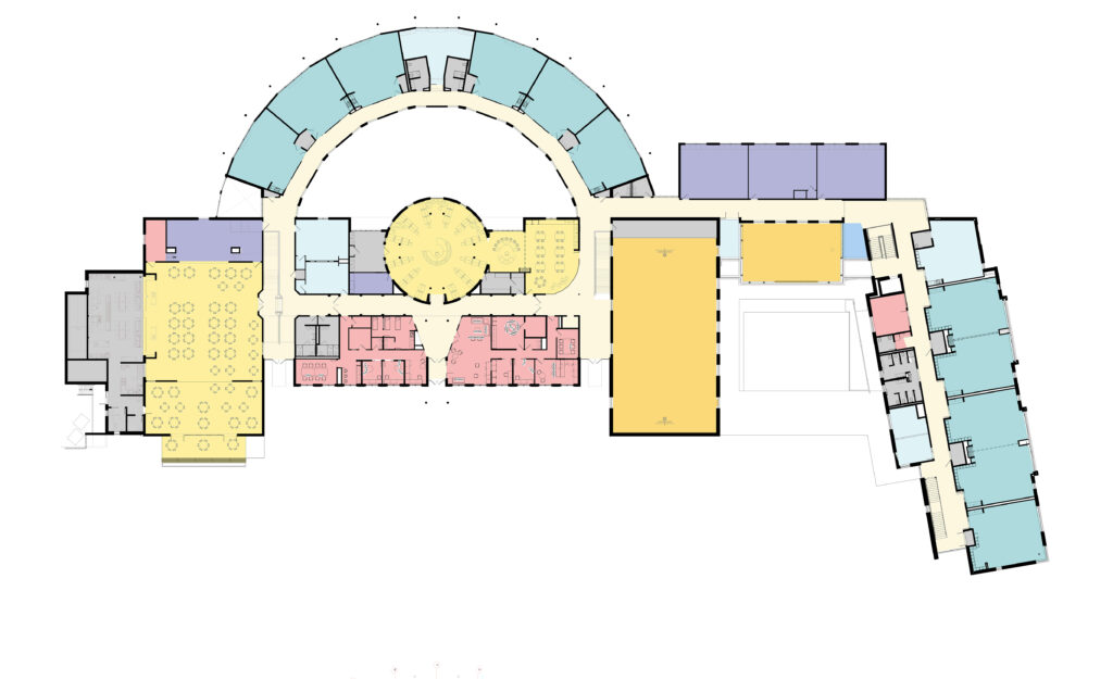 To support the continued growth of Albemarle County, VMDO designed a series of additions at Crozet Elementary school to expand capacity from 330 students to 680 students. Originally designed by VMDO in 1990, Crozet Elementary was inspired by both vernacular local buildings and Jeffersonian ideals of public education. A ring of classrooms orbits around a central courtyard and the iconic circular library. In 2020, Crozet Elementary School was the winner of AIA Virginia’s “Test of Time” award, one of only a handful of schools to earn this distinction.