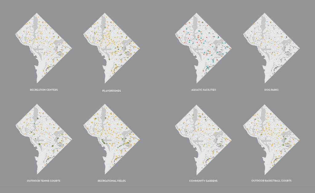VMDO partnered with Brailsford & Dunlavey to assist the Department of Parks and Recreation (DPR) with a high-level strategic plan for the District of Columbia’s parks and recreation system. The resulting Ready2Play Master Plan is based on months of robust community engagement work that obtained grassroots data on the most pressing needs and gaps in public park space across DC’s eight Wards. The Ready2Play Plan contributes to DC’s ever-changing urban fabric by expanding access to public space and in demonstrating how small-scale design decisions can make a city-wide impact.