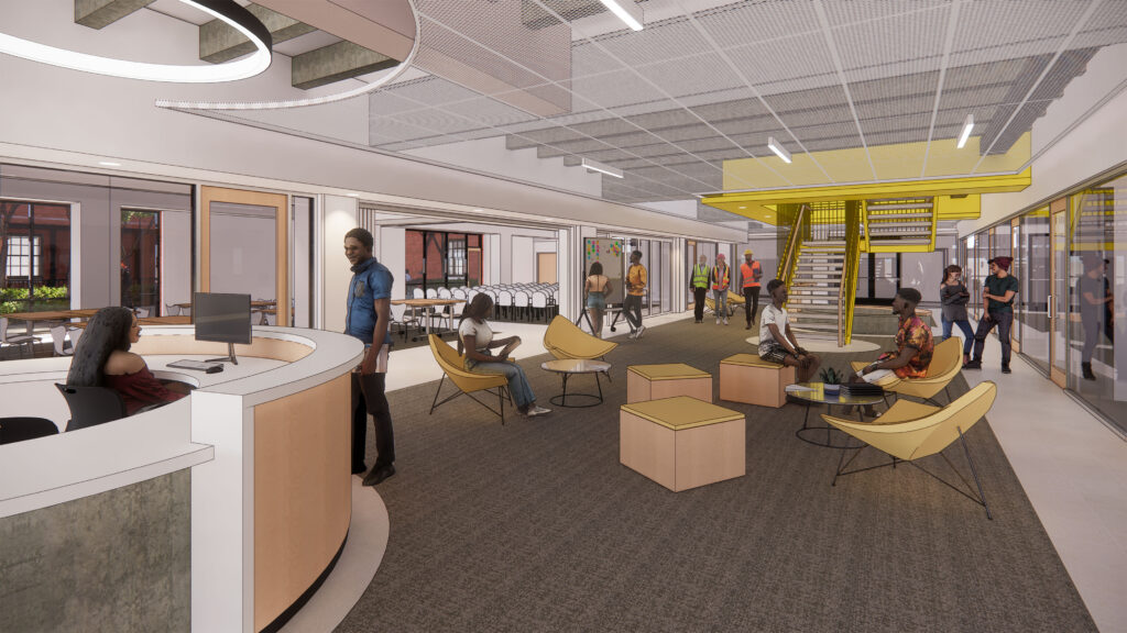 Stabilization of the entire historic building preserves it as a home for future civic programs, while renovations and additions support current DCIA classes with a plan for future growth. Flexible labs and classrooms are fitted out for key partners including PEPCO, WMATA, DC Water, Washington Gas, DC Solar Works, and more. It will support DC’s aspirational sustainability goals through the introduction geothermal HVAC and other high-performance materials and systems, along with a wider stormwater master plan to benefit the surrounding neighborhood.