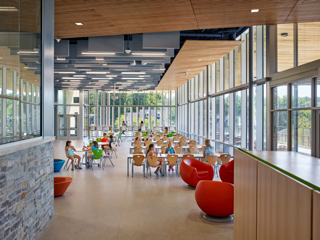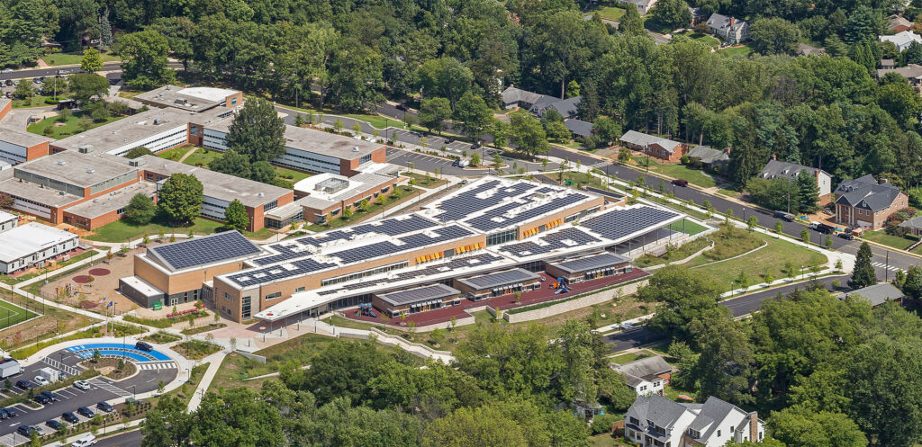 Considerations for site footprint, solar orientation, building construction, and energy use were given top priority in the iterative design process. With a capacity of 650 students in grades Pre-K through 5, the 97,588 GSF building is designed for an Energy Use Index (EUI) of 23 kBTU/sf/year – one third of the energy use of a typical County elementary school. This ultra-low EUI makes on-site photovoltaic energy generation possible within a traditional school budget.