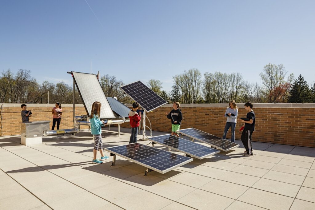 The school was designed to be a zero-energy building, meaning that the amount of energy produced annually by on-site renewable energy sources is equal to the amount of energy used annually. The school has been a trailblazer for zero-energy schools, both in demonstrating performance and engaging students in the “building as a teaching tool”: