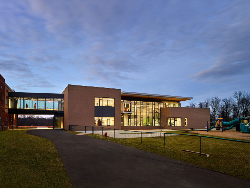 Co-located on the existing Smithland Elementary School site, the ELC features 2-stories and 9 learning studios with access to shared communal spaces and outdoor play and learning environments. With a current capacity of 170 students, the ELC was master-planned to support growth up to 350.