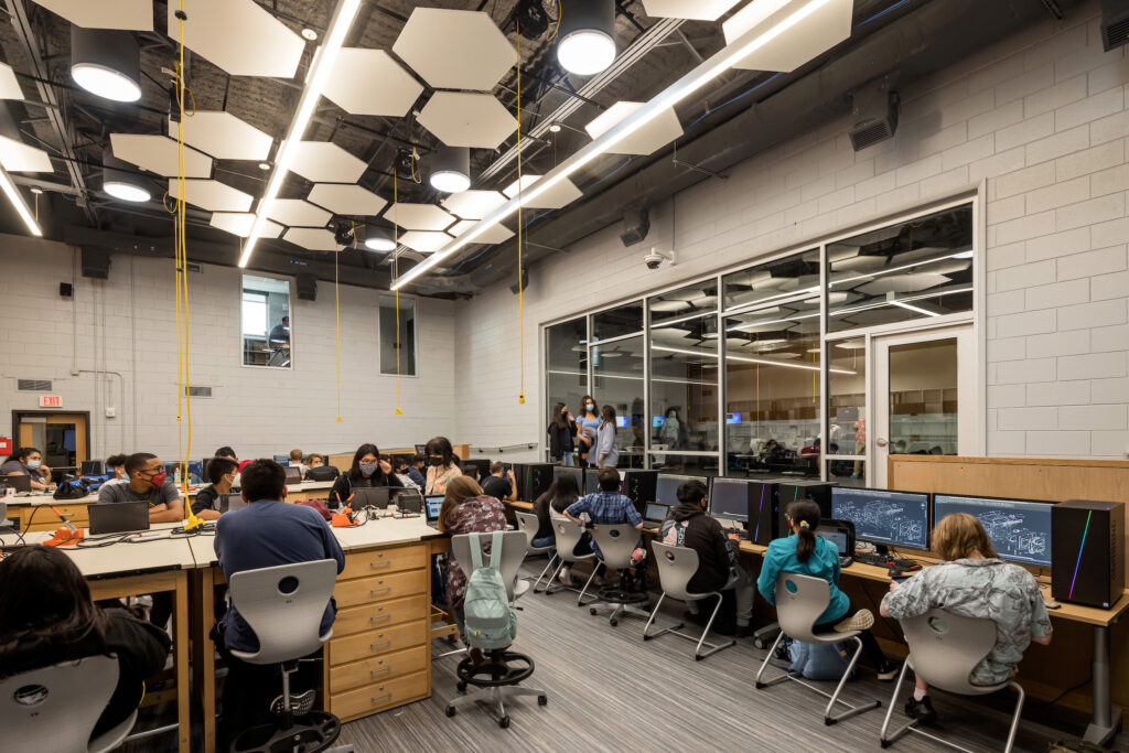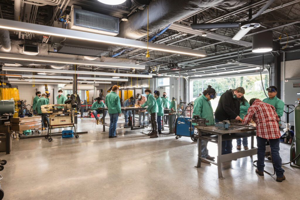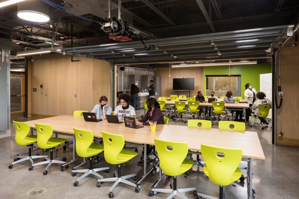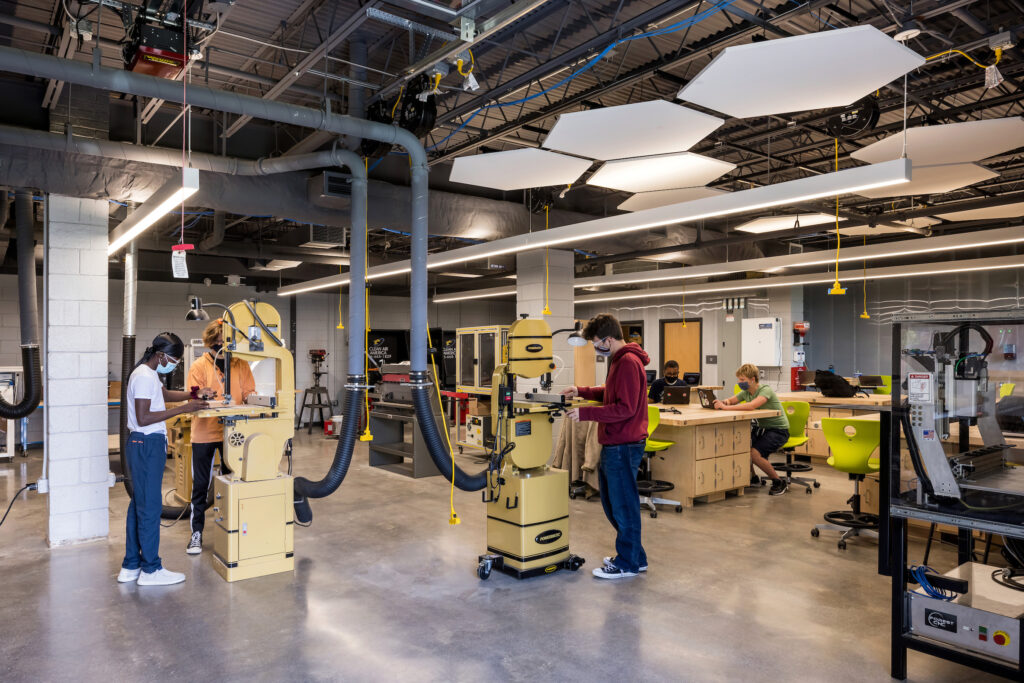 A radical transformation of an existing unused elementary school, the Shihadeh Innovation Center prepares and empowers students with marketable workforce skills. The interdisciplinary culture at the Innovation Center allows CTE teachers, academic teachers, and students to work together on real-world problems. All John Handley High School students can apply their academic knowledge to practical skills while adults and professionals in the community can learn a new trade or mentor youth interested in their professional field.