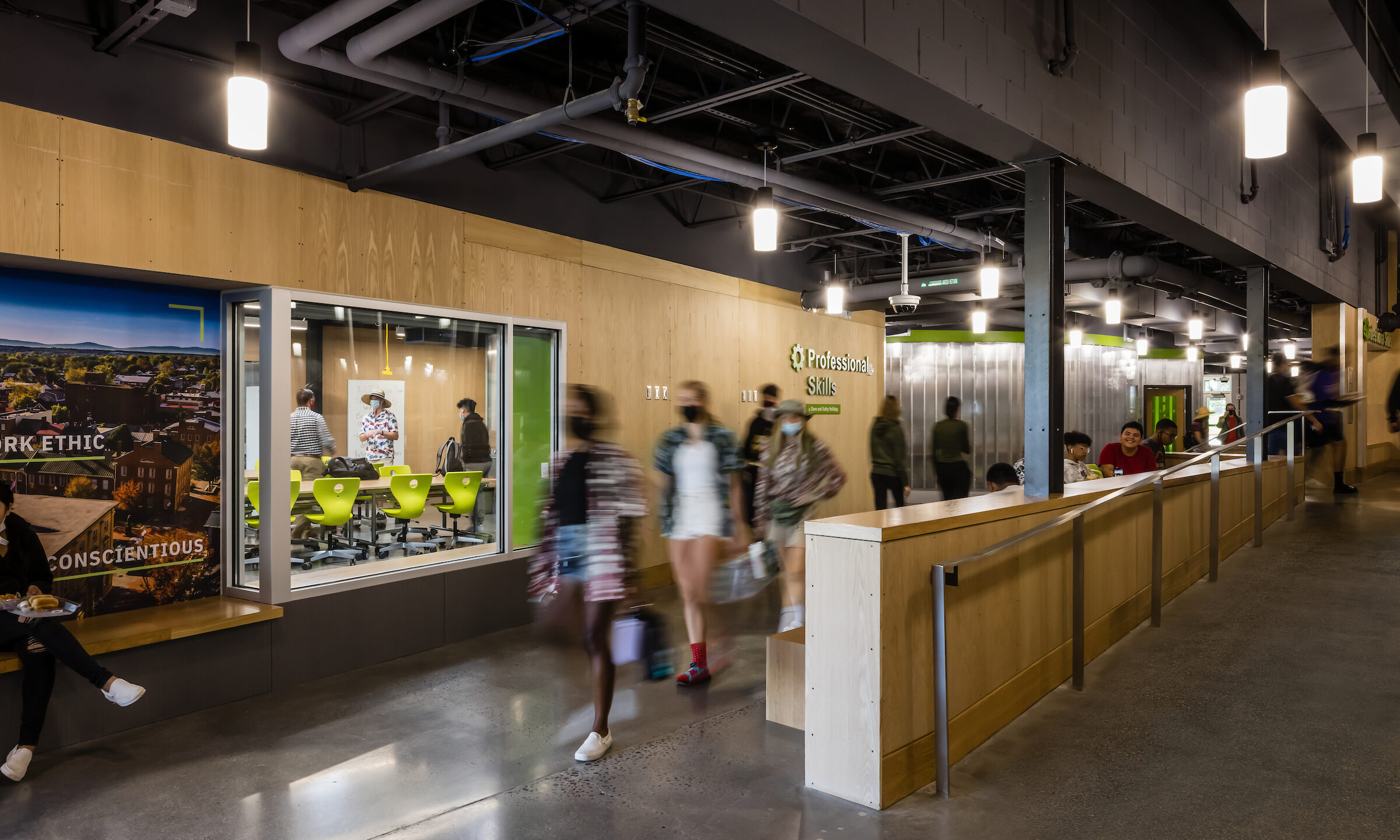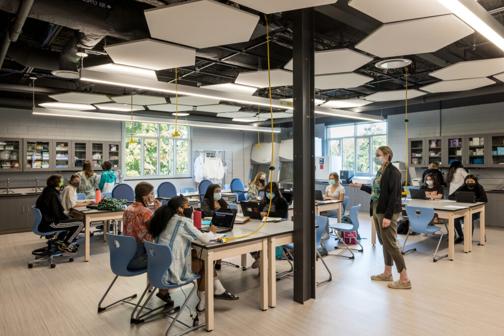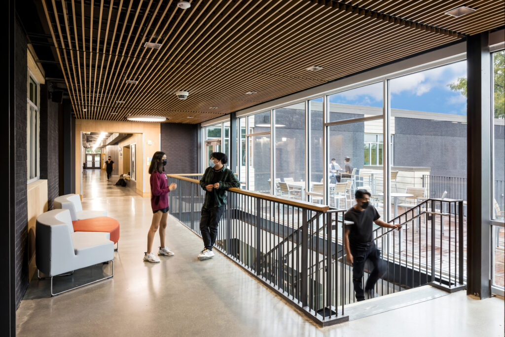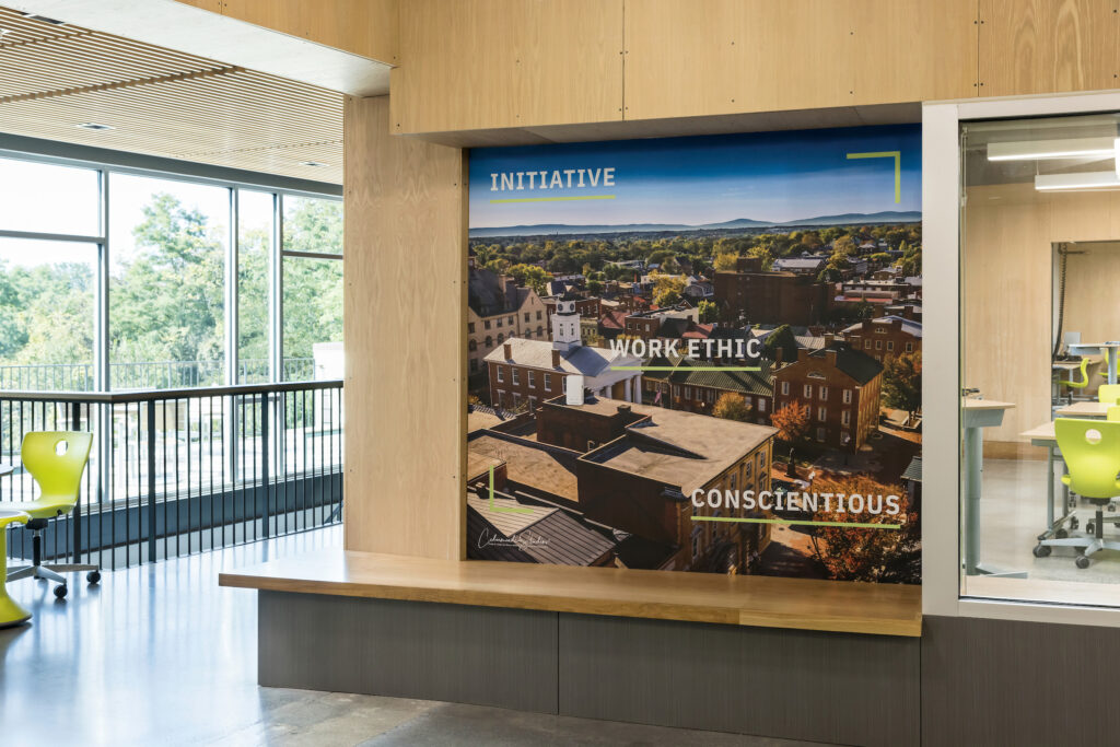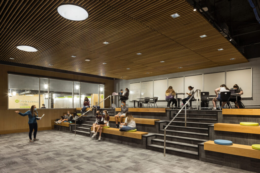 With high visibility work labs, dynamic collaboration and presentation spaces, abundant natural daylighting, and healthy materials and air quality, the Shihadeh Innovation Center breathes new life into an underutilized building and supports discovery and experimentation for all Winchester high schoolers.
