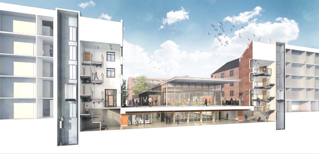 The Glenn and Towers Residence Halls at Georgia Tech are the hub of the Freshman experience, helping residents build a personal and academic connection to their school community. The LEED Gold revitalization of the halls includes the retrofit of the existing attics into student rooms, the addition and reconfiguration of study rooms and lounges, and the construction of a central connector building.