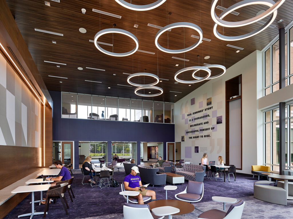 This was an incredibly important project for JMU as it not only began the development of a new area of campus, but also shed a new light on our university’s namesake. The design of the hall itself was based on our need for flexibility in how it might be used in the future. It works equally well for first year or continuing students, traditional gendered room assignments or inclusive communities, and the learning commons and classrooms will allow us to grow our residential learning communities on campus.