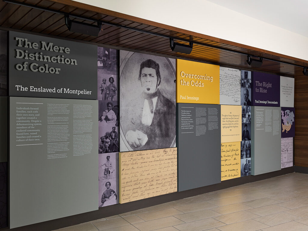 A key feature of Jennings Hall is its centrally-located Common House which provides a public platform for cultivating an engaged academic community. The 2,500 square foot space is easily reconfigurable for different functions – from everyday informal gathering by residents to larger-scale lectures, campus-wide forums, and student organizational meetings. Extending from the Common House into the lobby is an exhibit dedicated to the building’s namesake – Paul Jennings. Born into slavery at Montpelier, Jennings served as James Madison’s personal servant, overcoming significant adversities to leave a lasting legacy.