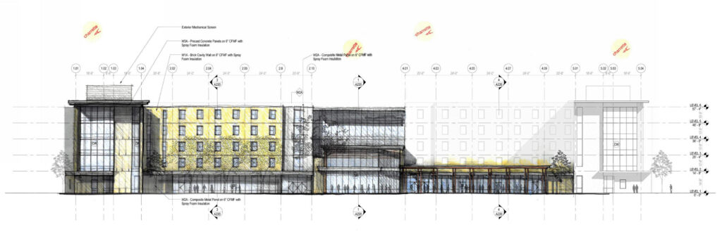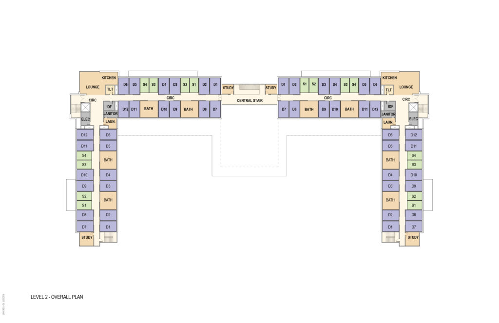 Paul Jennings Residence Hall adds activity and life to a growing section of East Campus through important landscape connections and ample interior public space for student life.