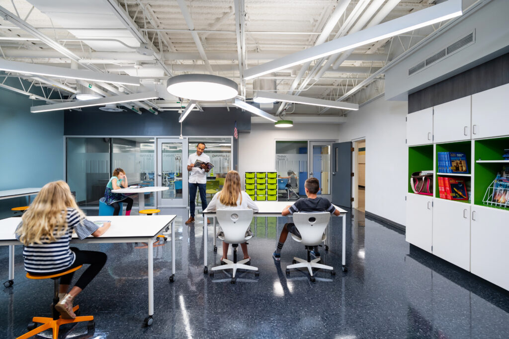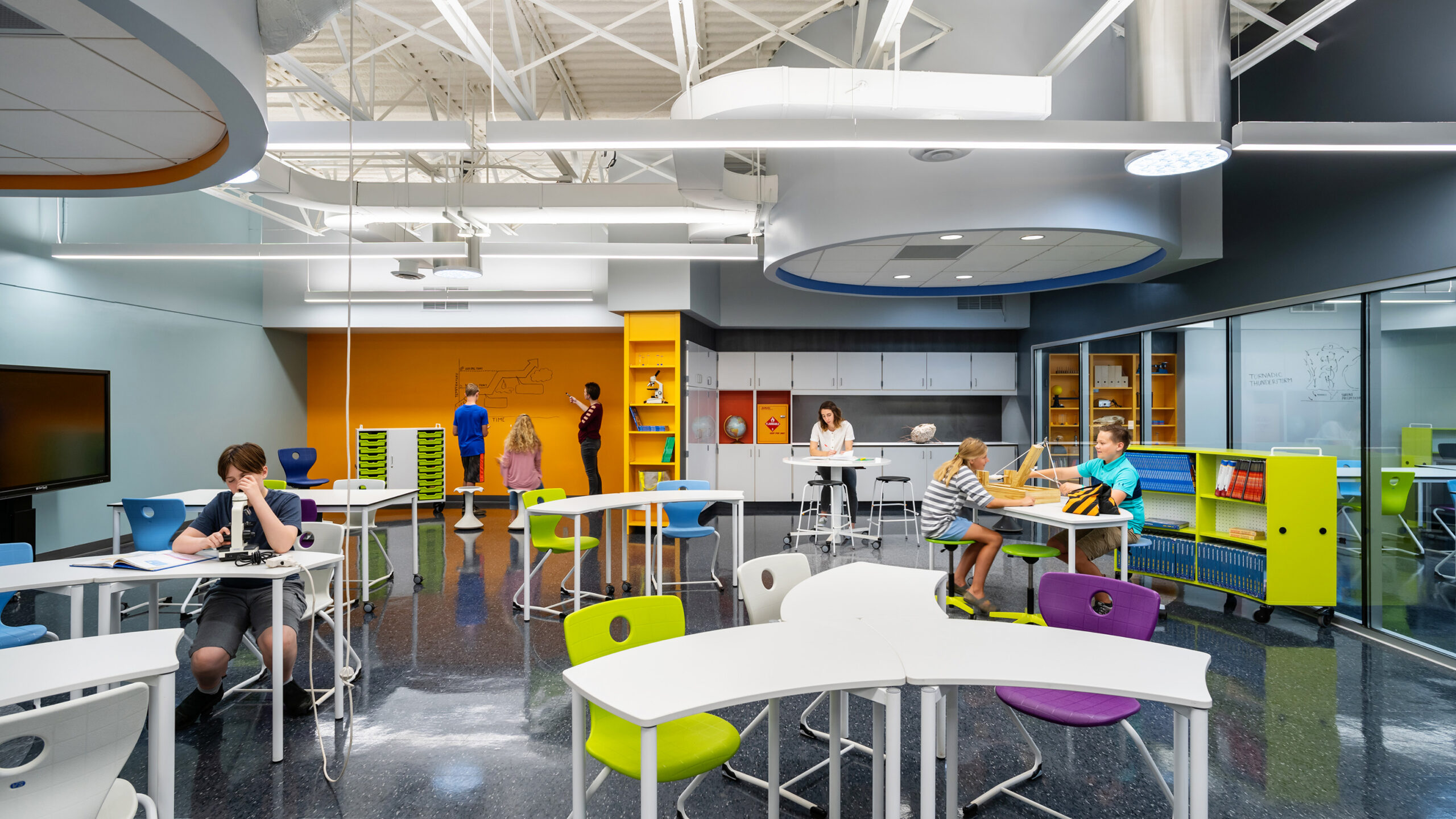 Informed by teachers’ and the administration’s pedagogical desire to embrace STE(A)M-based learning, the new learning labs encourage cross-disciplinary collaborations between grades and subjects. The design process incorporated administrator, teacher, and student feedback to balance long term visionary goals with day-to-day operational needs.