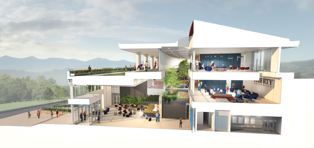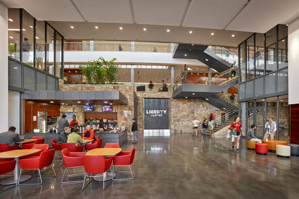 The Liberty University Athletics Center is an innovative athletics facility that integrates all the athletic operations, training resources, and academic support services for the well-rounded development of the successful Division-I student-athlete.