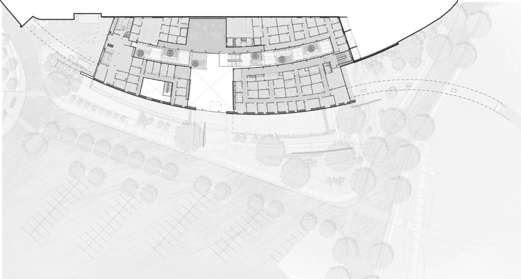 Through the incorporation of biophilic elements such as abundant daylight, water features, interior vegetation, a green roof, and the rhythmic expression of natural materials, the building became more than just a physical expression of support for student-athletes. It became a holistic experience and ecosystem for the entire athletic community, emanating wellness and uplifting body, mind, and spirit.