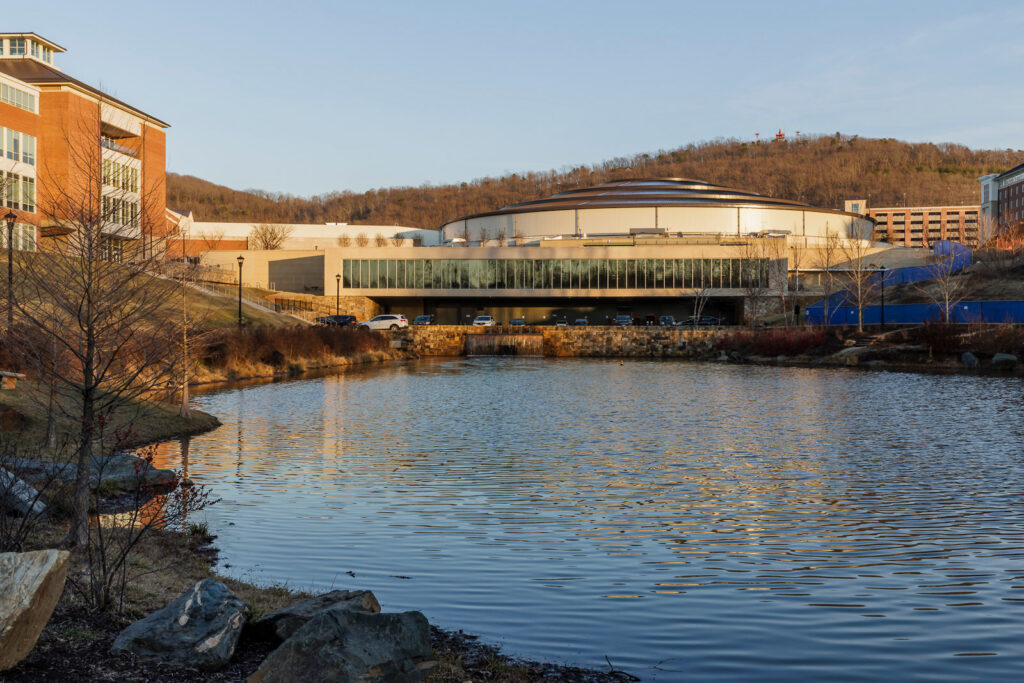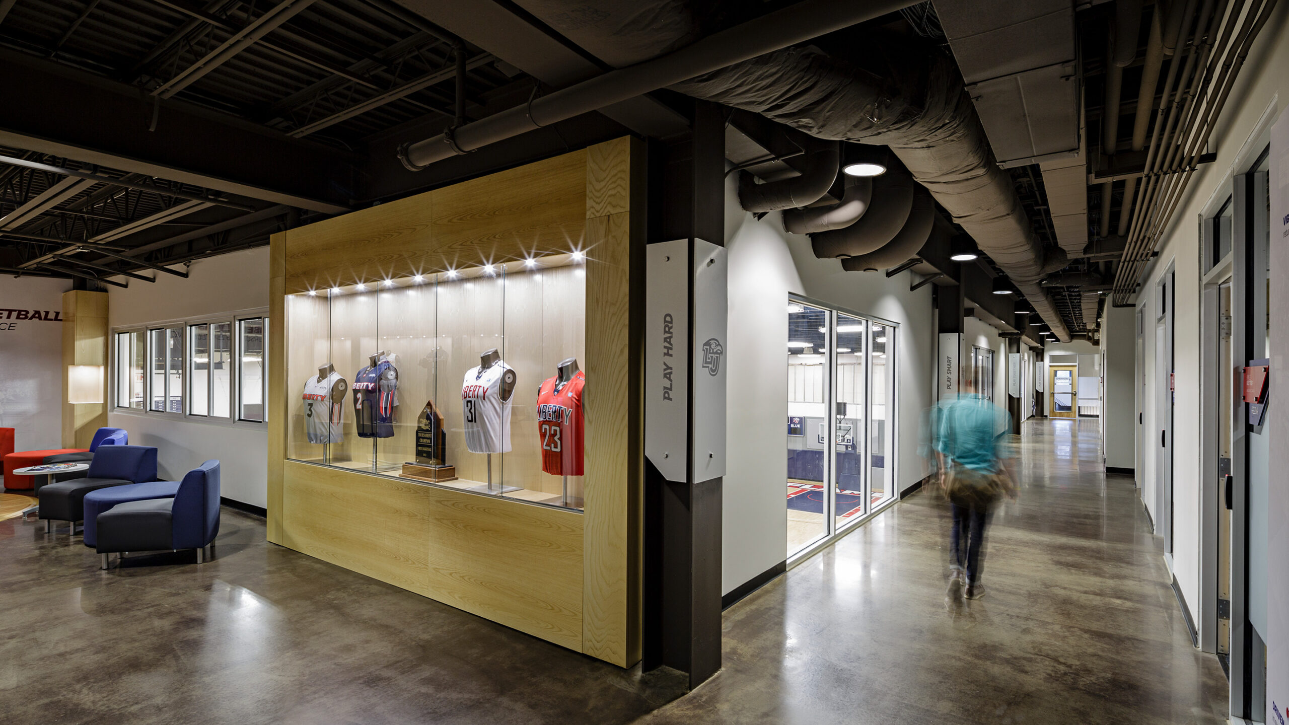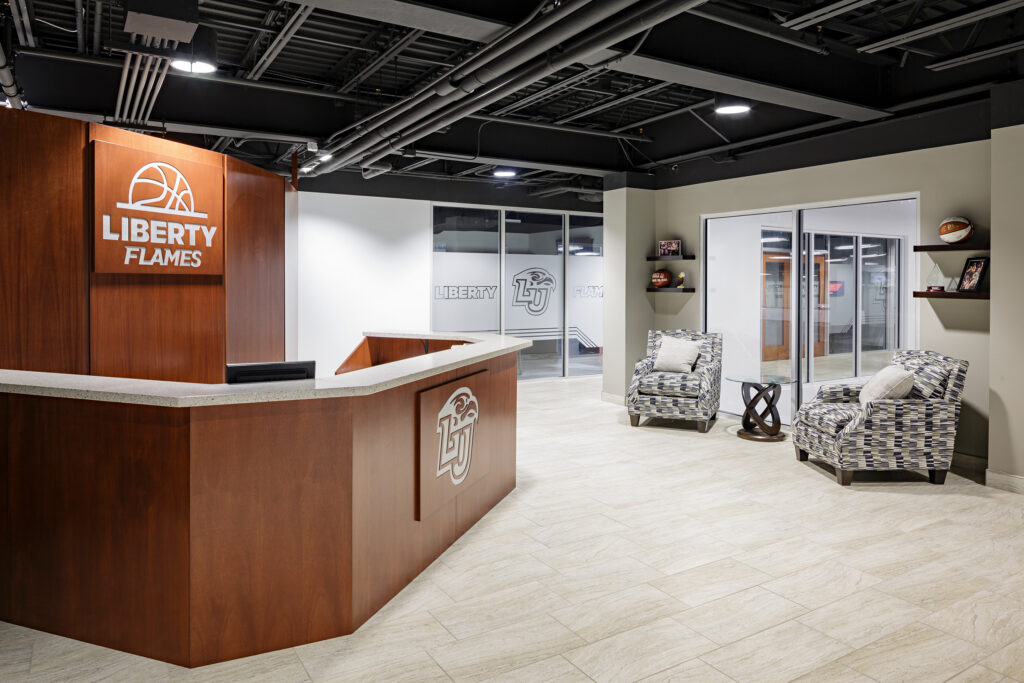 The new athletics facility helps organize the flow and layout of the campus and inspires excitement in campus life. Athletics is brought to the forefront with increased visibility and connectivity to students and visitors, contributing to Liberty University’s growing athletics culture and creating a more cohesive campus experience.