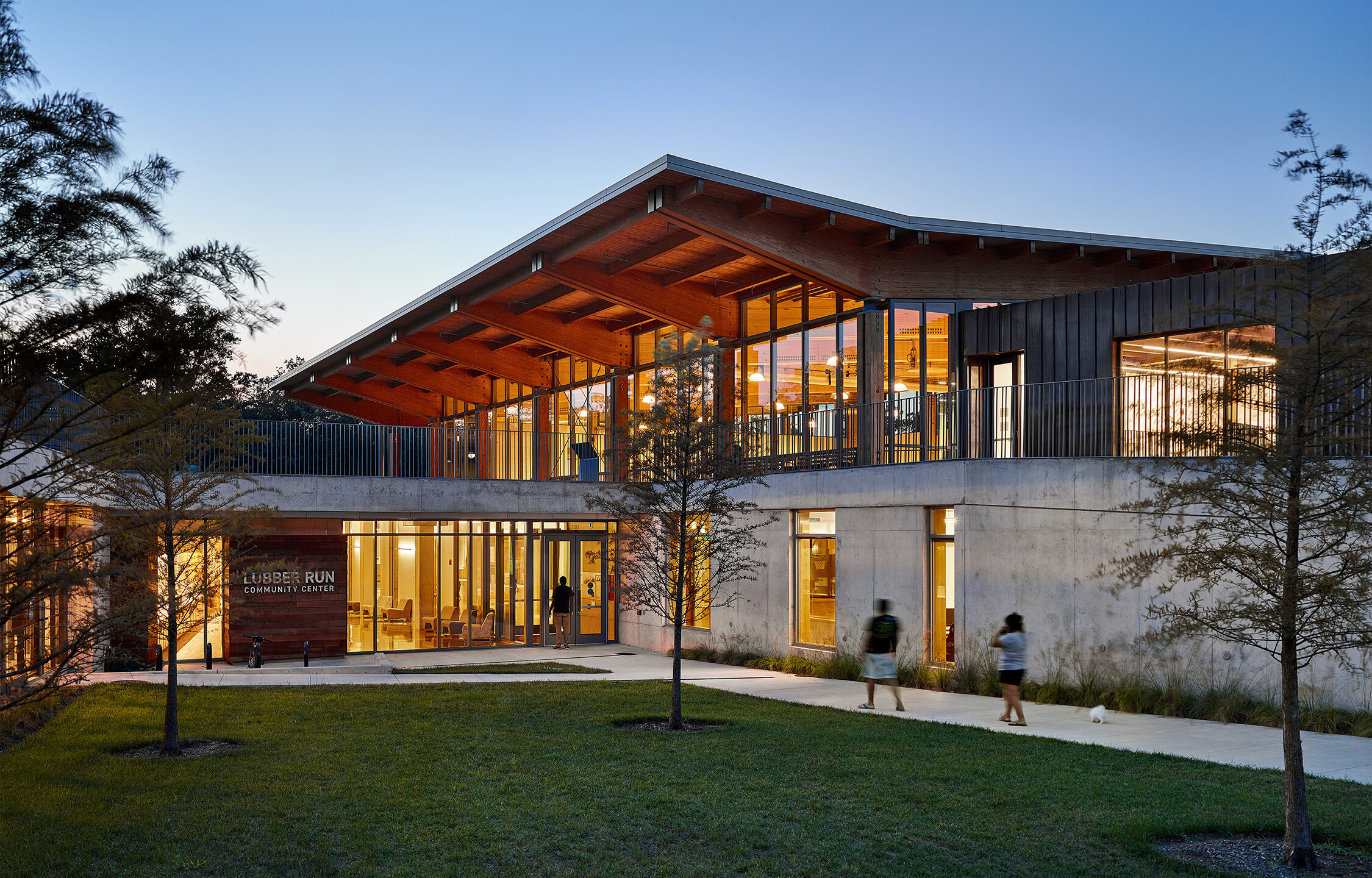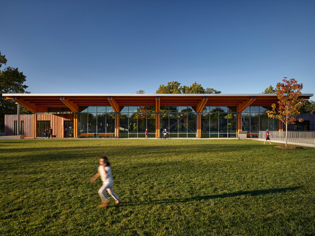 Featuring net-zero energy design and a landscape-focused approach to the surrounding park, Lubber Run Community Center offers a holistic response to an urban challenge and creates public space that is greater and greener for neighbors. Lubber Run Community Center replaces a previous 1950’s-era community building on a tight 4.5-acre site that also includes new outdoor recreation spaces and amenities.