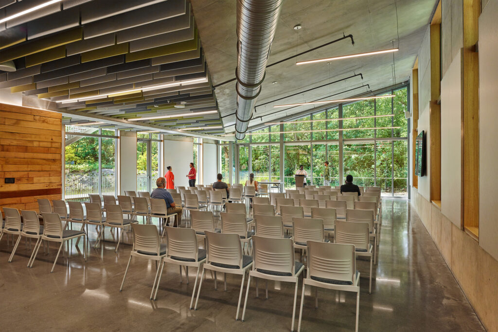 The team applied an empathetic approach to gathering cross-generational voices that informed the design of numerous blended spaces connected to nature. Robust local partnerships supported solutions for a sustainable, place-based design that integrates interior and exterior public and programmed spaces. The resulting hybrid solution blurs the distinction between indoors and outdoors and encourages occupants to feel connected to the park landscape around them.