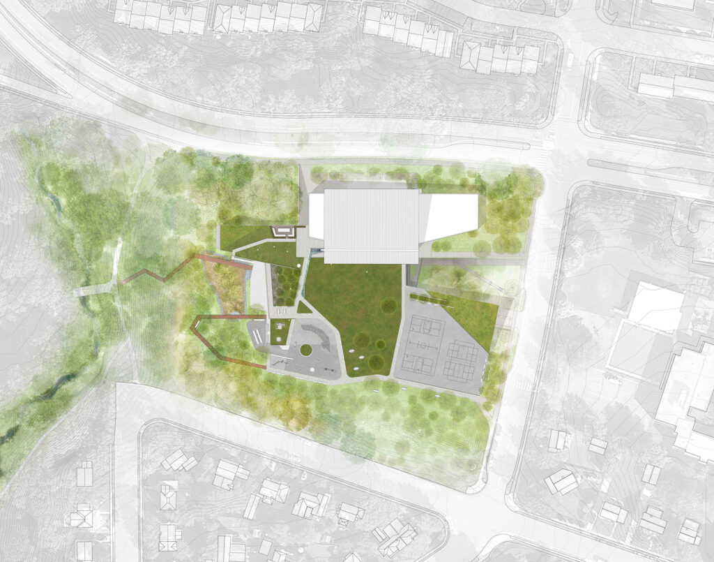 Through community meetings, online feedback, and on-site engagement, community voices helped inform the initial stages of design. The first meeting focused on understanding the site and neighborhood, spatial characteristics and materials of different program spaces, and community fears and desires for the project. Design drivers were derived from this feedback as well as from existing site features, board directives, and sustainability goals. At subsequent meetings, multiple schemes were presented, evaluated and refined, resulting in a hybrid solution that is integrated into the park while still presenting a strong recognizable presence in the community.