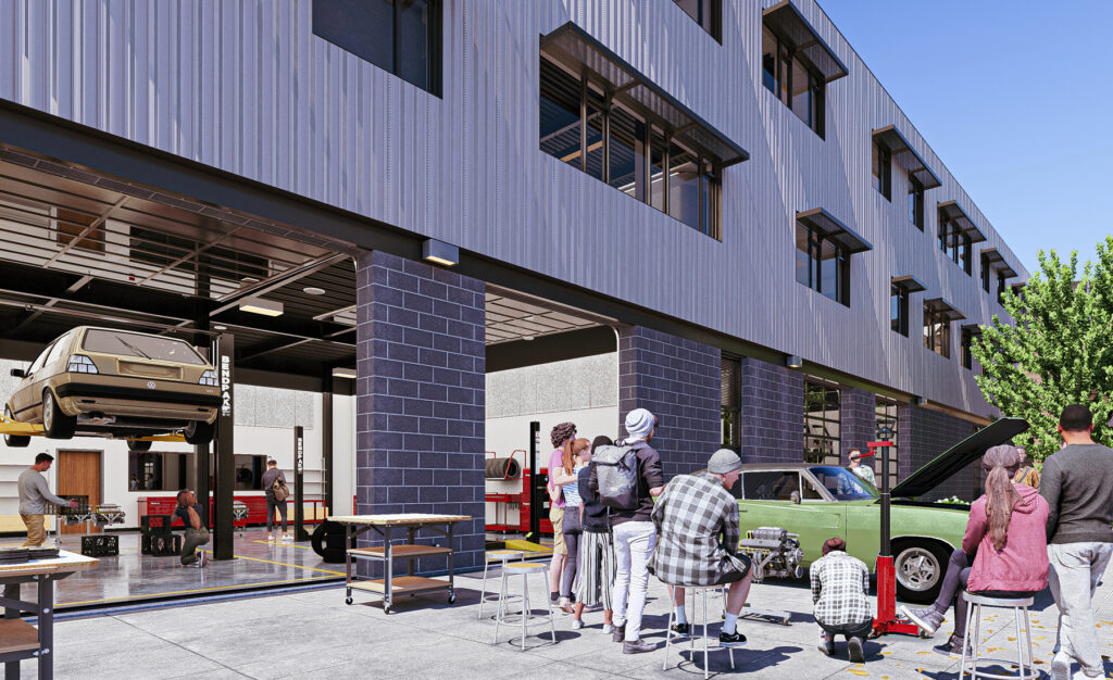 Inside the school balances industrial references with warmth and inspiration. Wide corridors open to framed views of the surrounding ridgelines while small nodes along circulation routes offer spaces to display student work and foster informal collaboration. In a community where sports have long been central to school identity and rivalry, the new consolidated athletic facilities provide a shared arena for competition and celebration. Throughout, the design honors the ethos of a region built on craftsmanship, perseverance, and place-based knowledge.