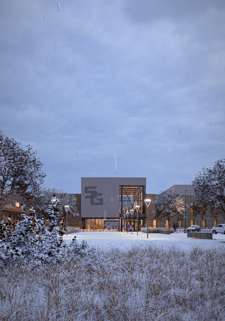 The Southern Gap campus reimagines its extracted landscape as one of vision, community, and care. The building’s architectural parti draws directly from Buchanan County’s cultural and geological roots. A strong central spine clad in brick evokes the long, linear tunnels of coal mines and connects all the building’s primary functions. Metal-clad volumes that intersect the brick spine draw inspiration from the local architectural industrial heritage. These wings house specialized programs such as athletics, performing arts, and engineering, each framed as sites of purposeful activity and cultural continuity.