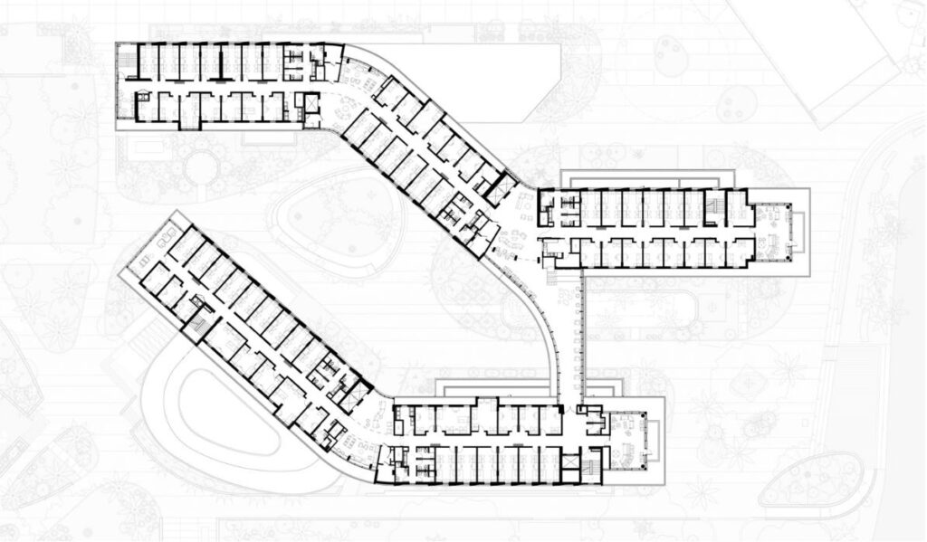 The design of Centennial Village offers respite through physical and visual connections to nature and through the incorporation of natural materials and colors. The creation of an active pedestrian landscape that brings the outdoors in through views and daylighting increases student alertness levels, decreases absenteeism, and supports better sleep quality and opportunities for movement. Access to daylight, acoustic design, and attention to temperature and humidity create the right conditions that make residents feel comfortable and at home.