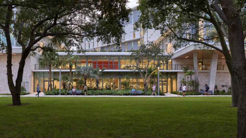 With a campus architecture that creates a magnetic destination and compelling home for first year students, VMDO won the competition for the University of Miami’s Centennial Village. The design of the lakefront residential village will transform the University of Miami’s first year student housing into a modern and eclectic mix of sustainable buildings.