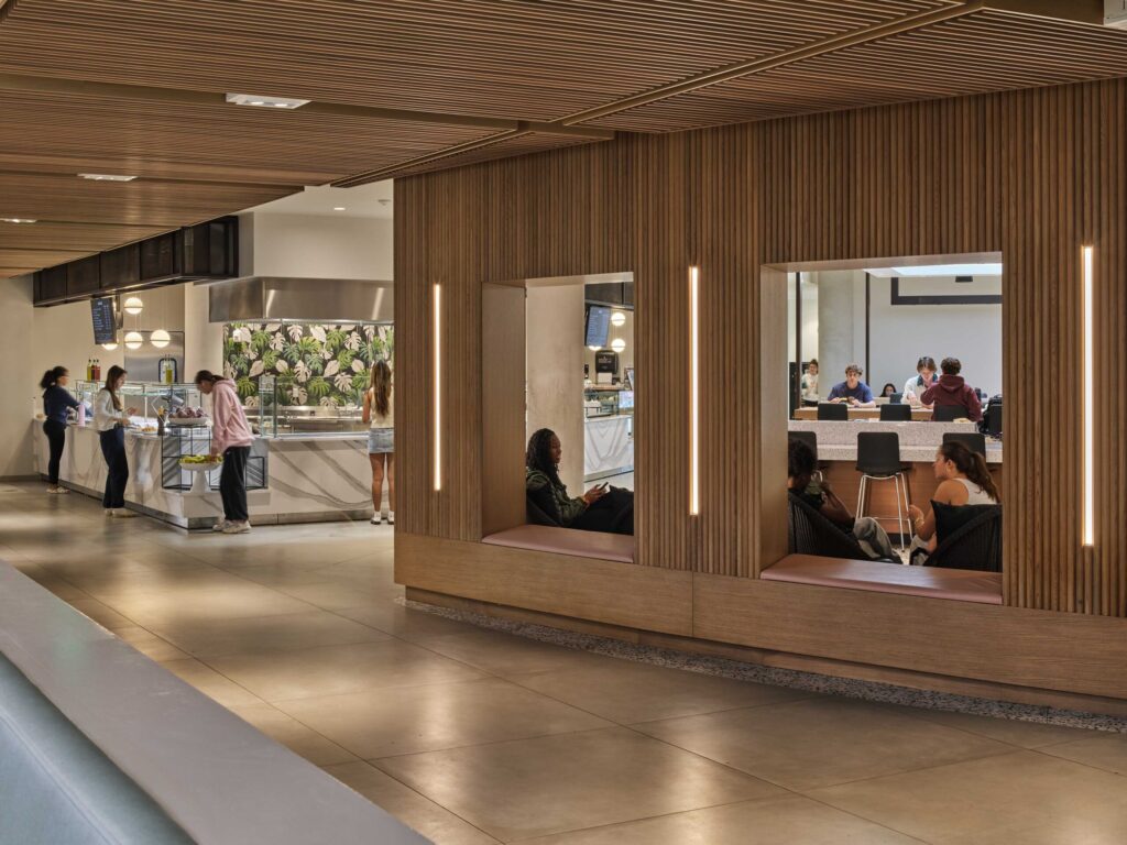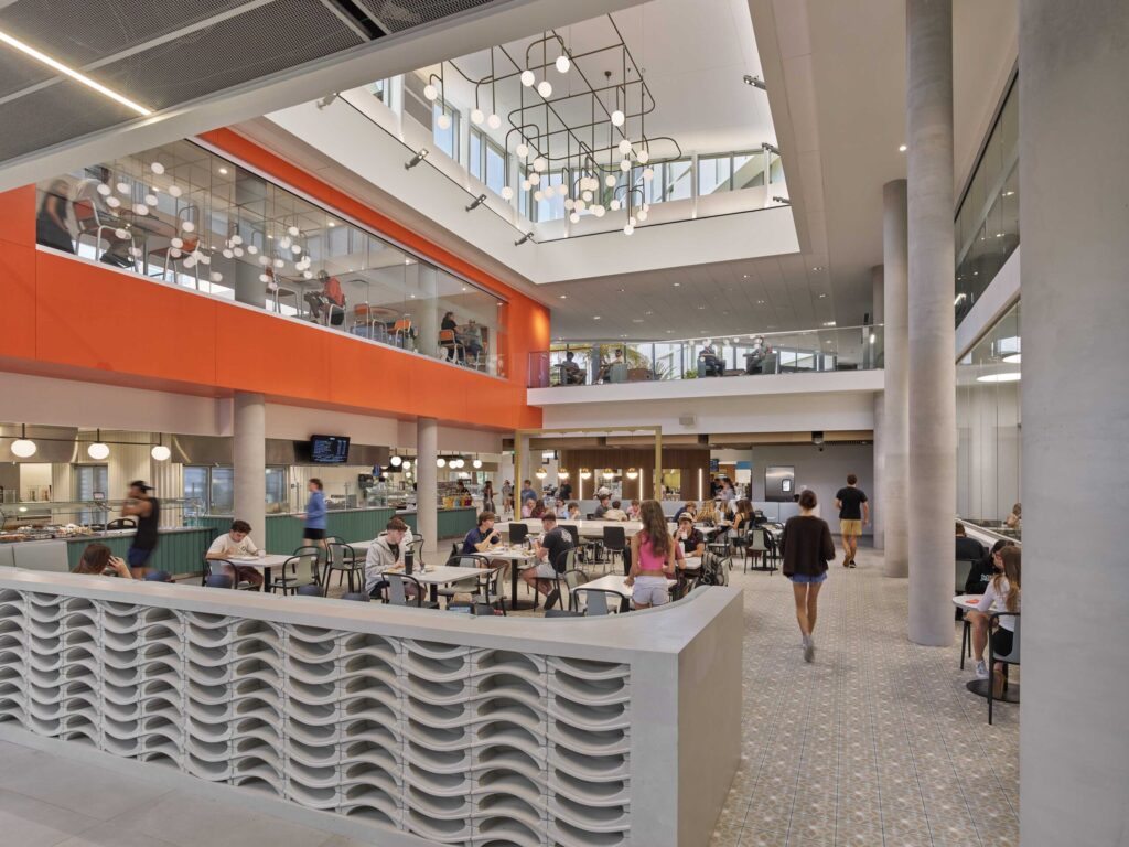 The Residential Colleges are distinguishable as four buildings, offering a straightforward sense of orientation and identity for students that makes a lasting impression. The Canal Walk site connects residential, academic, dining, and pedestrian spaces along a shared waterfront.