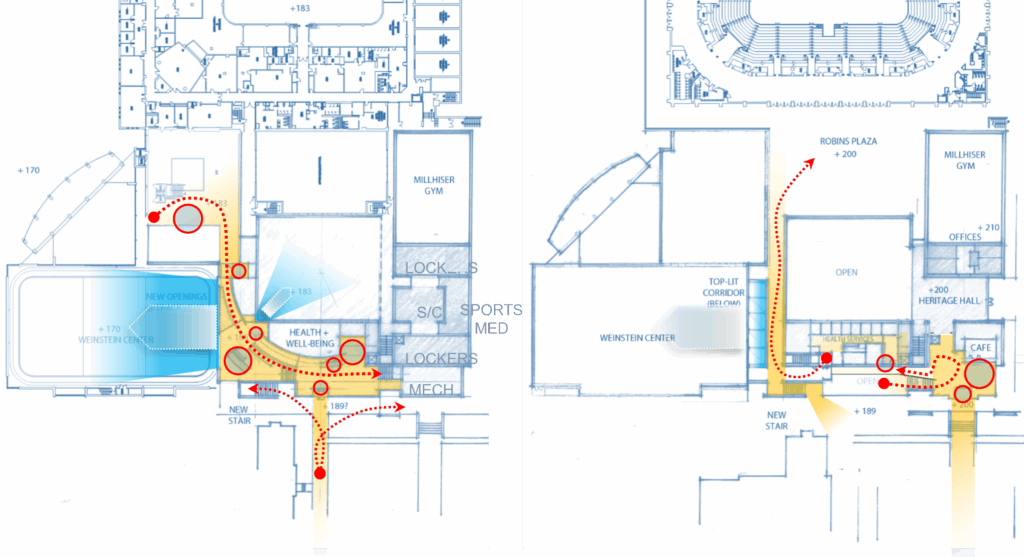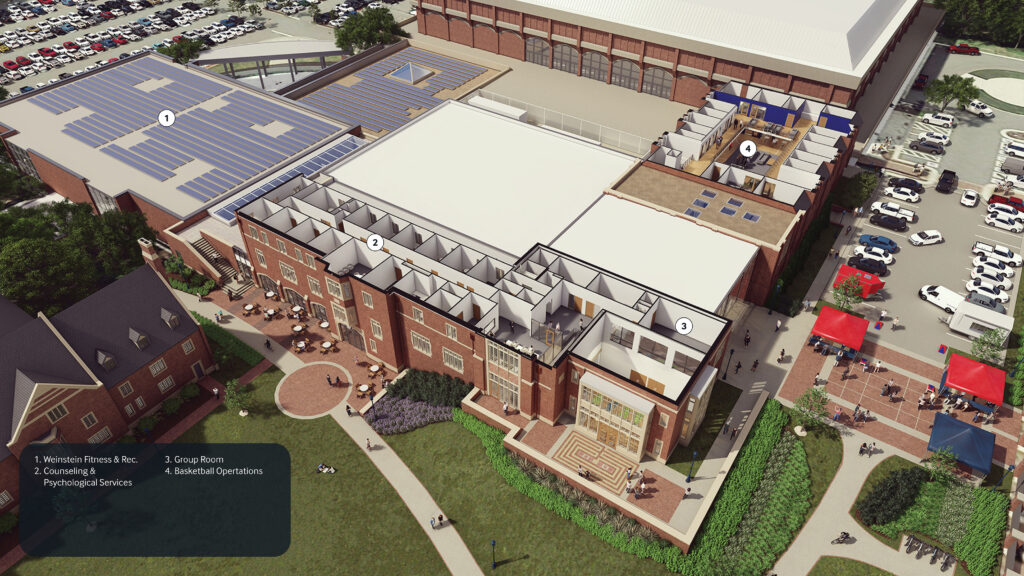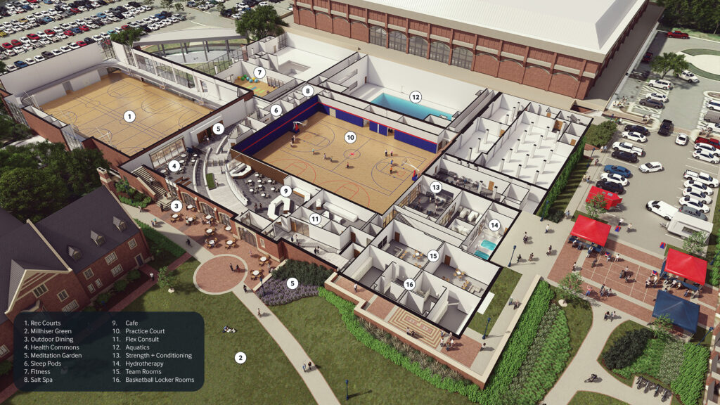 By embracing the connections between health, wellness, fitness, nutrition, and sport, the University of Richmond’s Basketball Practice and Well-Being Center creates a comprehensive center for students that supports both high achievement and a well-balanced life on campus.