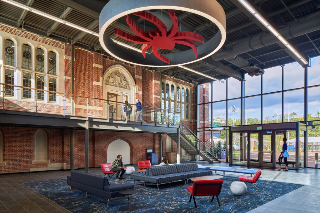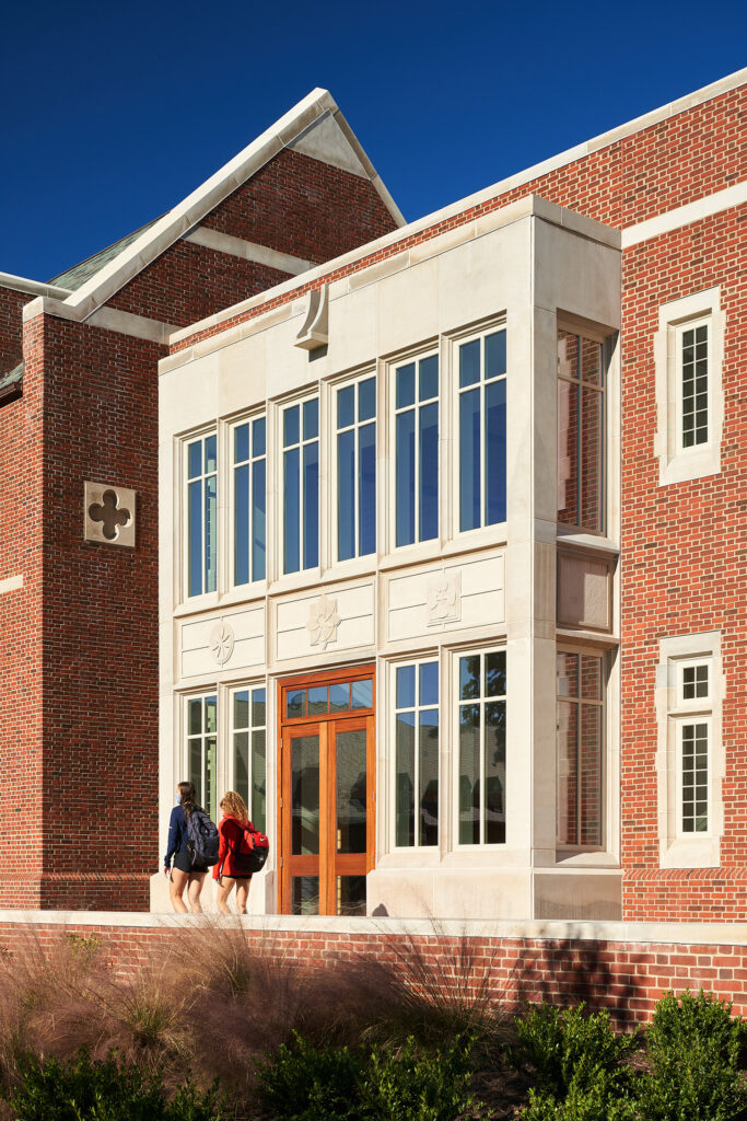 The building honors the university’s distinctive and historic collegiate gothic architectural heritage. The design takes cues from Ralph Adams Cram’s original architectural vision to keep this new facility seamlessly aligned with the campus’ historic influences. A portal joining old and new buildings, the facility is forward-looking while signaling the enduring qualities of the student-centered programs inside.