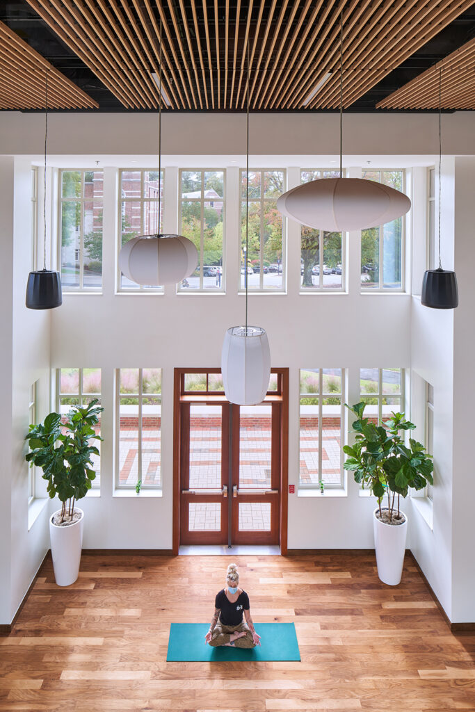 The Well-Being Center promotes connectivity between fitness, health, and well-being to help students holistically learn how to cope with stress and other life challenges during their time on campus. Rigorous planning and programming investigated an upstream approach to health promotion that leverages adjacencies with athletics, academics, student health, health promotions, and Counseling and Psychological Services (CAPS) to build foundational support for healthy habits and a sense of well-being on campus.