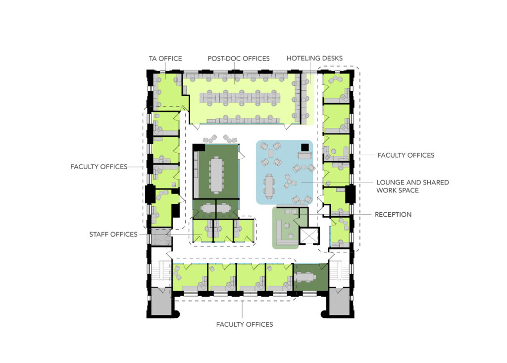 VMDO worked closely with the UVA College of Arts and Sciences to maximize its space utilization across Grounds and offer strategic recommendations for future projects and programmatic synergies.