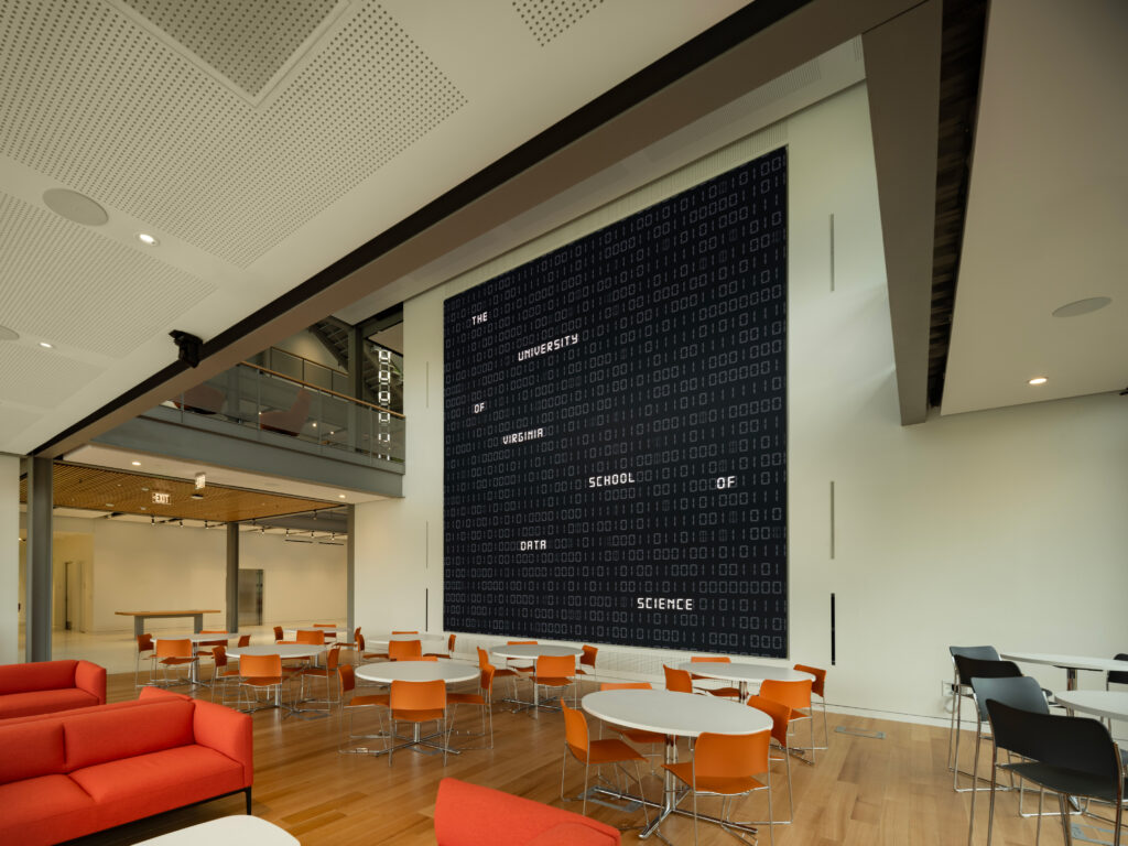 The building is designed to embody what experts at UVA believe data science is. We have this impressive open atrium with exposed steel and a unifying stair along with an interactive data sculpture. The growth of the School of Data Science shows how much the University believes data science will change the world.