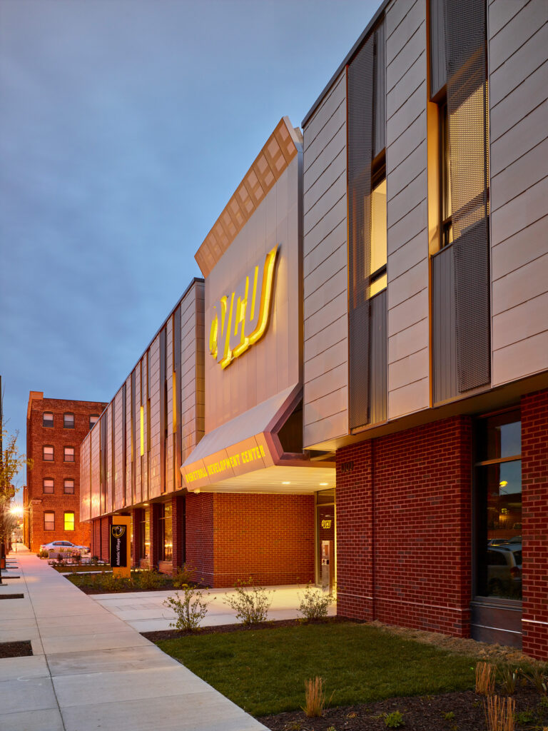 Located in downtown Richmond, the new Basketball Development Center provides a state-of-the-art recruitment and development facility for both men’s and women’s programs. The design both celebrates the VCU Rams basketball programs and connects fans and passersby. Clerestory lighting and expanses of translucent glass foster a sense of openness and fellowship with the surrounding campus community.