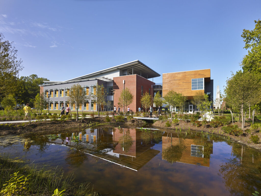 The Greer Environmental Sciences Center’s spatial and visual connections help create an inspiring sense of place on the VWU campus. Through its location and landscaping, the building connects students in powerful ways to their local ecological community.