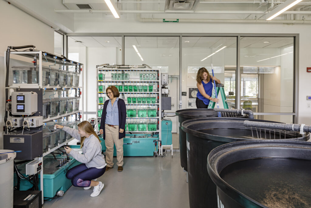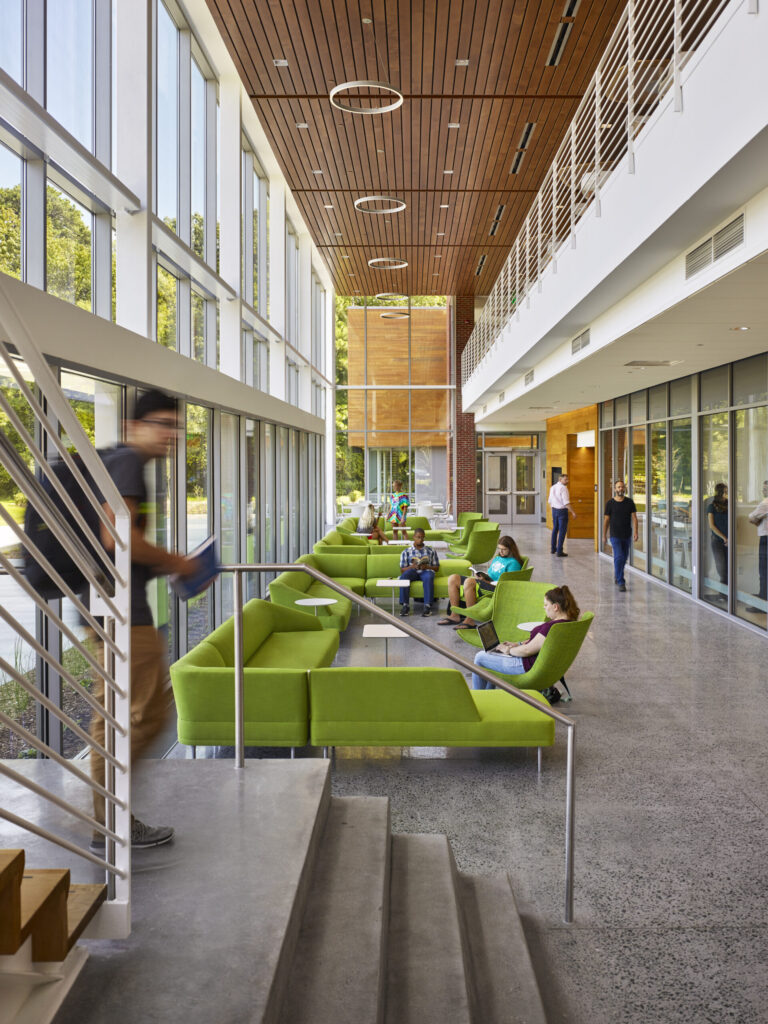 The Greer Environmental Sciences Center elevates Virginia Wesleyan University’s commitment to environmental sustainability and advocacy for a thriving, cross-disciplinary sciences program. Occupying a prime location on the main quad, the Center connects students to the building’s dynamic program and natural context. Designed to honor former President Greer’s commitment to environmental sustainability, the building facilitates hands-on learning opportunities, catalyzes regional research partnerships, and encourages environmental stewardship.